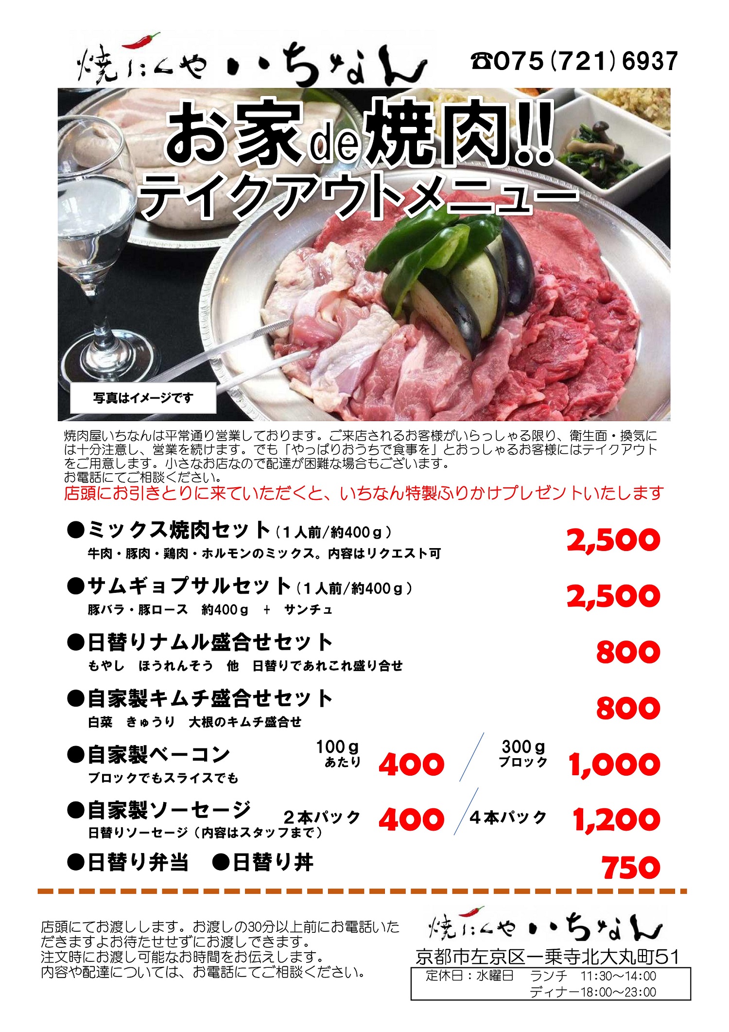 京都一乗寺にある出会い系情報発信型の元焼肉屋。自家製のべーコンソーセージお惣菜やナムルの製造販売とイートインで営業しています。